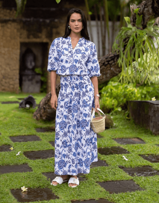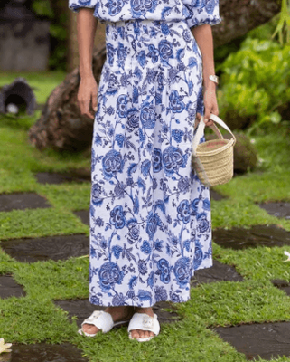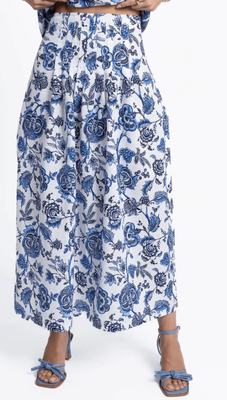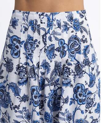 This effortlessly stylish midi skirt in our gorgeous Le Jardin print features flattering pleat detailing and a super comfortable elasticated waistband. The perfect piece to elevate your summer wardrobe with effortless elegance. The lower skirt section is loose, light and very comfortable.